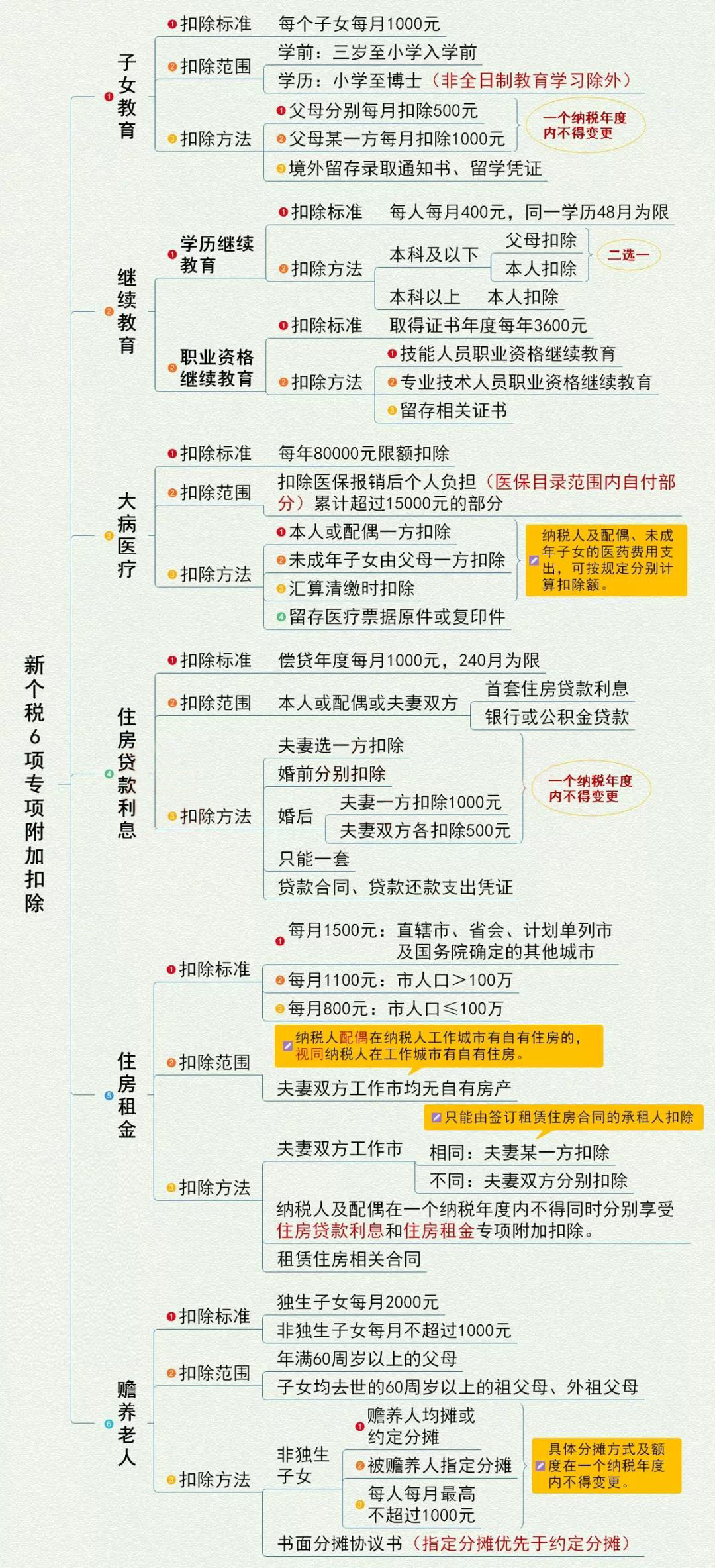 即:子女教育、繼續教育、大病醫療、住房貸款利息、住房租金、贍養老人。